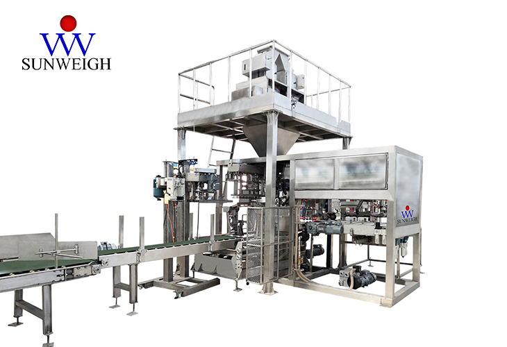 設(shè)備組成主要包括:包裝袋輸送機、上袋機、抽氣裝置、自動折邊、縫包機、輸送機等。
